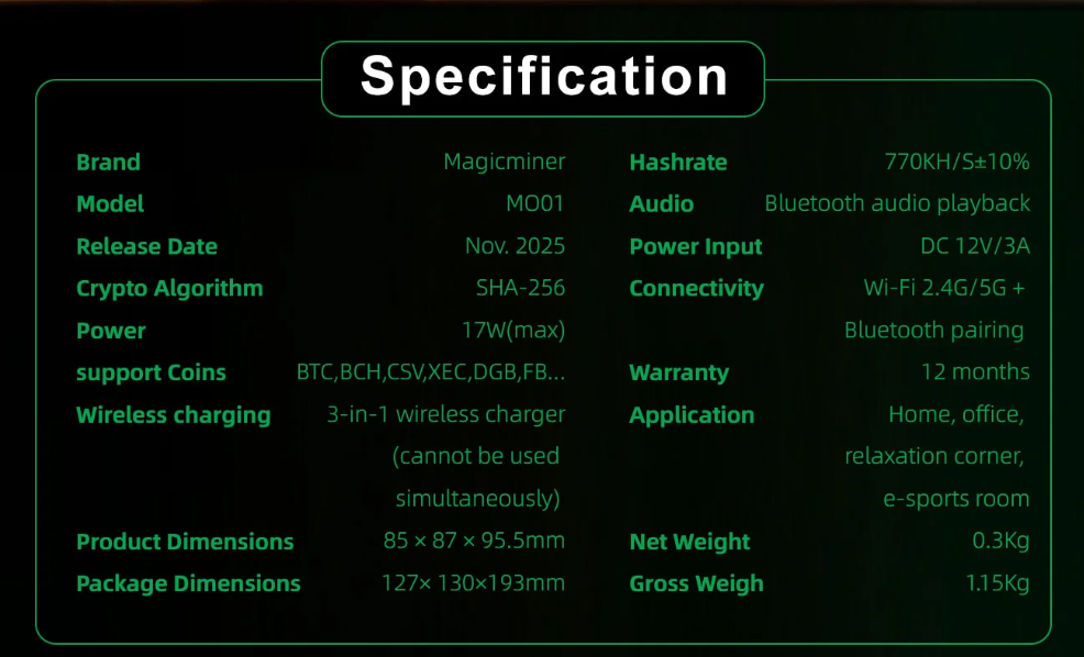 The Magicminer M001 is a next-generation home SOLO crypto miner designed for everyday environments such as homes, offices, and gaming spaces.